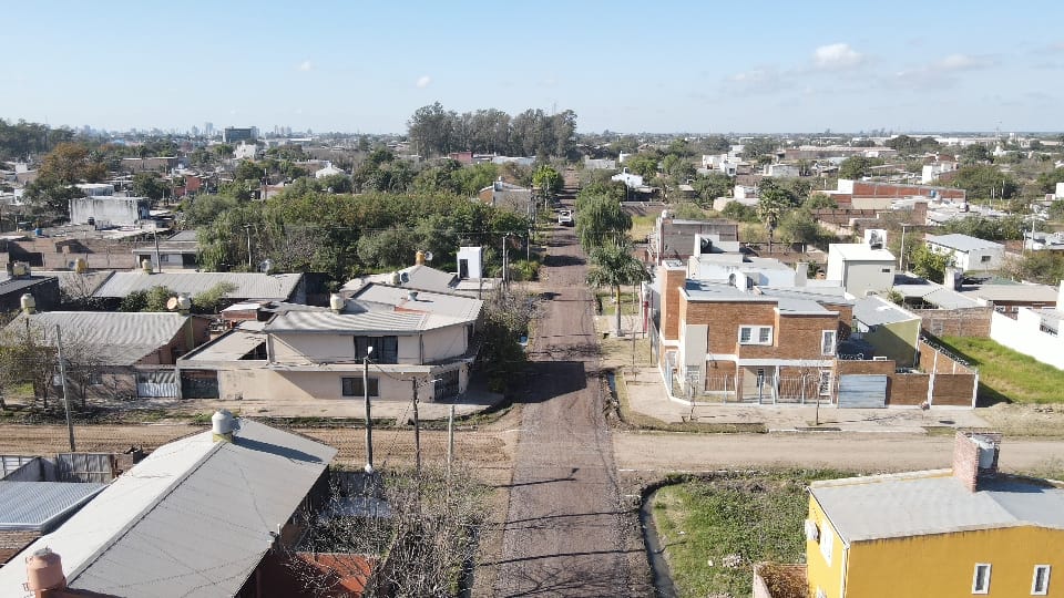 La Dirección de Vialidad Provincia avanza el enripiado urbano en el barrio Aramburu de Resistencia. Se trata de varias cuadras donde se construye y reconstruye la calzada natural de la zona con pidras y limpieza de cunetas exitentes.